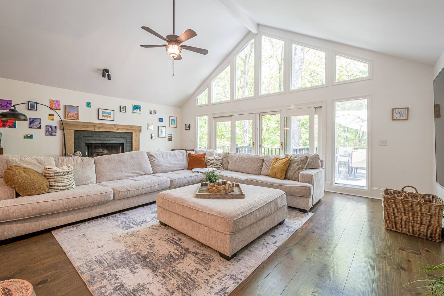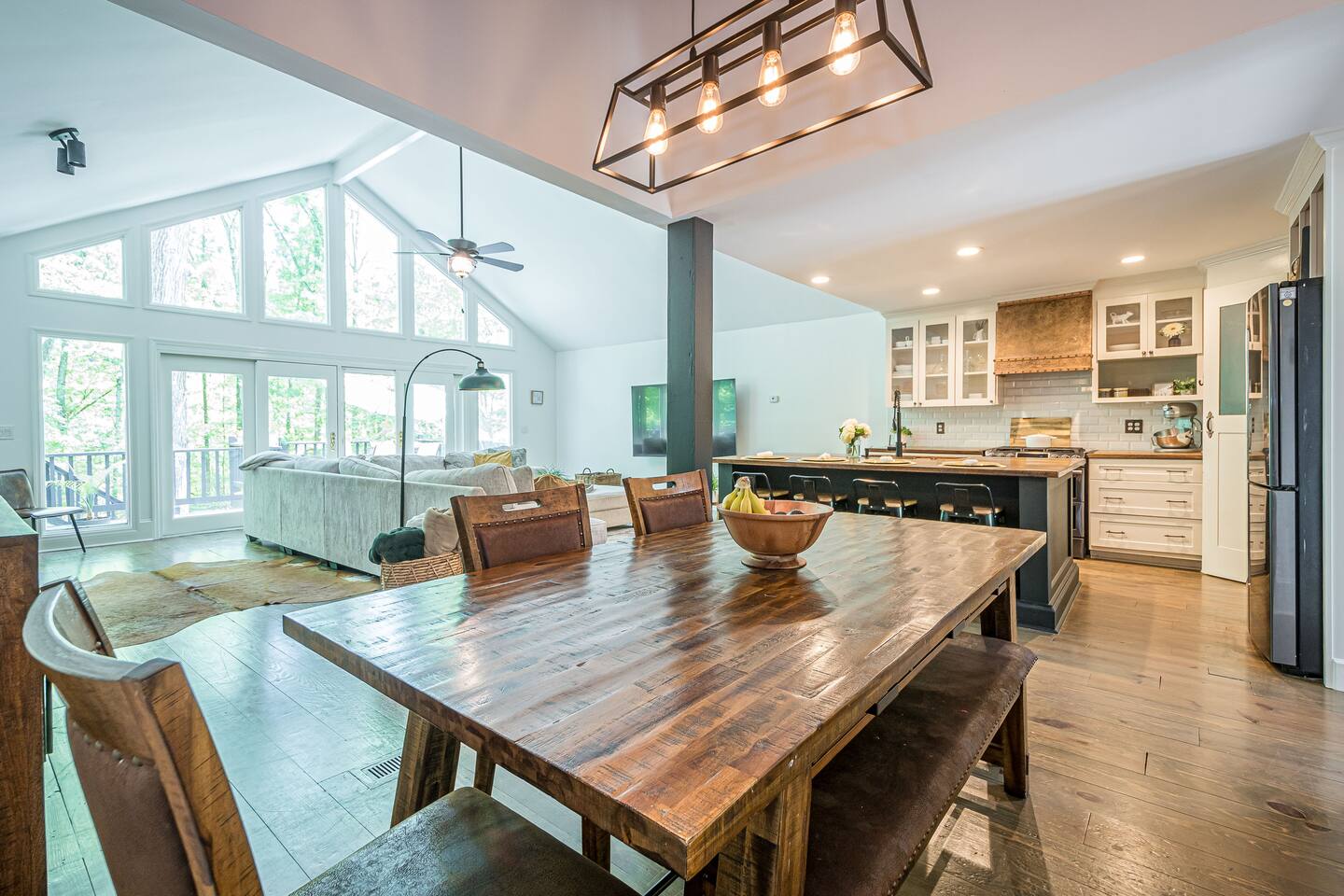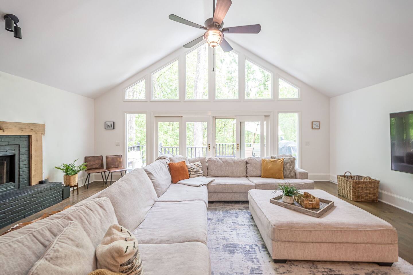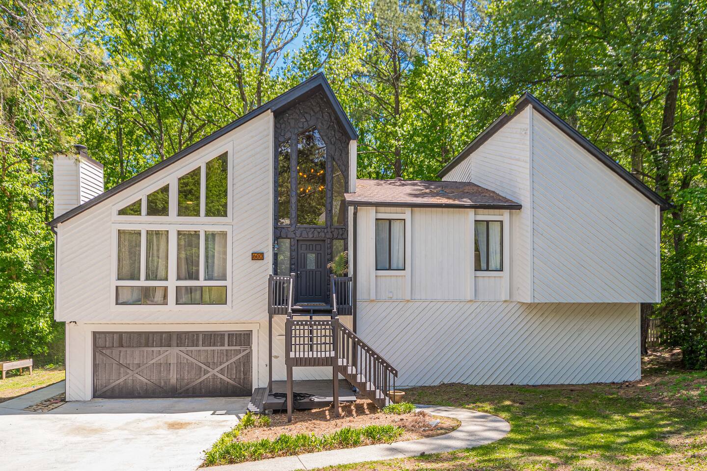 30 mins to FIFA World Cup 3 miles to East Cobb Baseball Complex 4.8 miles to Downtown Woodstock 4.2 miles to KSU Kennesaw State University 8.4 miles to Wellstar Kennestone Hospital 8.5 miles to Marietta Square 10 miles to Lake Alatoona 12 miles to Downtown Roswell 15 miles to the Atlanta Braves Stadium 15 miles to The Battery 18 miles to Northside Cherokee Hospital 23 miles to Northside Hospital 24 miles to Piedmont Hospital 25 miles to Midtown 25 miles to Piedmont park 25 miles to Botanical Gardens 26 miles to the Georgia Aquarium 29 miles to the Atlanta Zoo 32 miles to Emory University Hospital 37 miles to domestic terminal airport Renovated with love and attention to every detail, to ensure a relaxing and peaceful stay at our home. The Mid-Century Retreat conveniently combines two living rooms, fully stocked kitchen, dining area , 3 bedrooms with a private patio attached to primary bedroom, secluded loft, a beautiful backyard leading up to a creek to create a beautiful retreat ambience setting for your ideal stay. Large windows allow for plenty of natural light to illuminate the space, and along with bright wooden floors, tasteful finishes, and leafy plants, to create a pleasantly relaxing ambiance. ★ PARKING ★ ✔ MAX 2 cars spots available on the left side of the driveway. The remainder cars are subject to street parking. ★ MAIN LIVING ROOM ★ ✔ Large sectional couch to entertain entire family ✔ 85 in Sony TV ✔ Large windows overlooking the woods ✔ Comfy additional seating with Pillows and Blankets ✔ Fireplace ✔ Entrance to deck and backyard ★ FRONT LIVING ROOM ★ ✔ comfy couch with additional seating ✔ Large book section ✔ Large windows overlooking the forest ✔ Fireplace ★ KITCHEN & DINING ★ ✔ Kitchen Aid ✔ Refrigerator/Freezer ✔ Drip Coffee Maker ✔ Sink - Hot & Cold Water ✔ Trays ✔ Glasses ✔ Silverware ✔ Pots & Pans ✔ Disposables and essentials in the pantry A cozy dining table for 6 and a bar top that is suitable for 4. ★ PRIMARY BATHROOM ★ The inviting full bathroom is completely private and separated from the main space. ✔ Walk in-Shower DOUBLE shower head ✔ Bathtub ✔ Vanity for two ✔ Mirror ✔ Toilet ✔ Walk-in Closet ✔ Towels ★ BATHROOM ★ ✔ Shower ✔ Vanity ✔ Mirror ✔ Bidet ✔ Toilet ✔ Towels ★ OUTDOOR AREA ★ Step outside to the private patio from the primary bedroom sliding doors to enjoy some nature yoga. We also a deck with outdoor seating and a grill prepared for family fun. The deck leads to a staircase to the backyard which is full of trees and a nice play-set for children. If you continue to walk down the backyard you will find a beautiful creek that is great for picnics and stargazing. ✔ Seating Area with Table and Chairs ✔ Outdoor play set BBQ ✔ Picnic equipment ★ MASTER BEDROOM ★ ✔ Queen-Size Bed (Mattress type: Medium) with Pillows, Linens, and Sheets ✔ Night Stands with reading lamp ✔ Paloton Bike ✔ Private patio with zen station ✔ Zen station Yoga mats for Yoga in nature ✔ Private bathroom ★ BEDROOM 2★ ✔ Full-Size Bunk Beds (Mattress type: B soft and Top spring) with Pillows, Linens, and Sheets ✔ Closet for clothing storage ✔ Pack and play travel crib ★ BEDROOM 3★ ✔ twin-Size Bunk Beds(Mattress type: foam on bottom weight limit 200lbs medium on top weight limit 150lbs ) with Pillows, Linens, and Sheets ✔ Night Stands and children's desk ✔ Closet for clothing storage ★ BEDROOM 4 LOFT ★ ✔ King-Size Bed (Mattress type: Firm) with Pillows, Linens, and Sheets ✔ Fold-out futon (comfort type: firm gel) for additional sleeping area ✔ Ceiling fan ✔ Smart TV ✔ Night Stands ✔ Book Selection