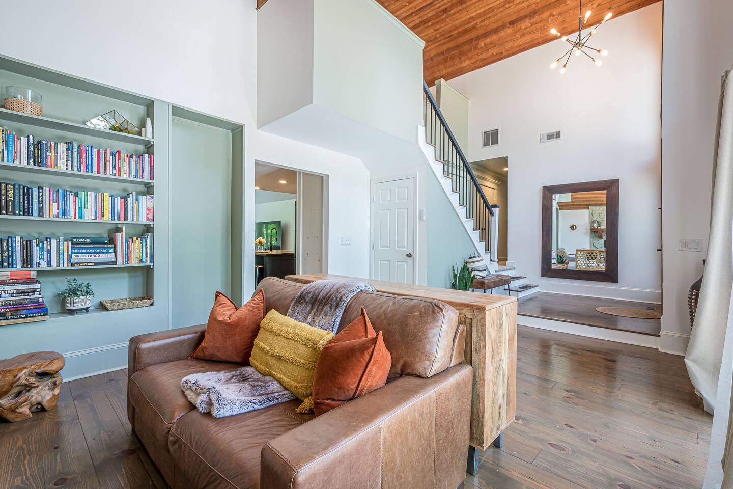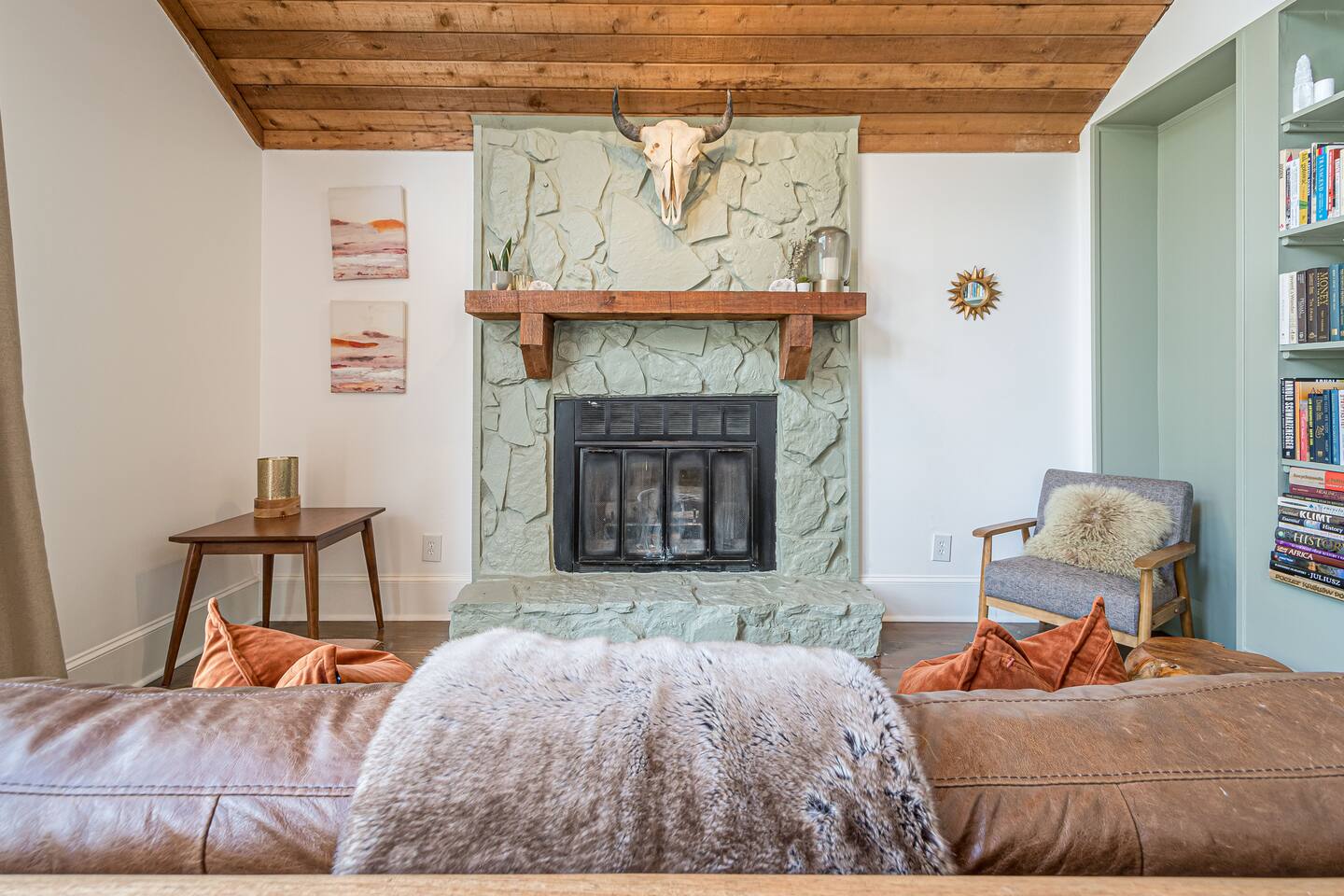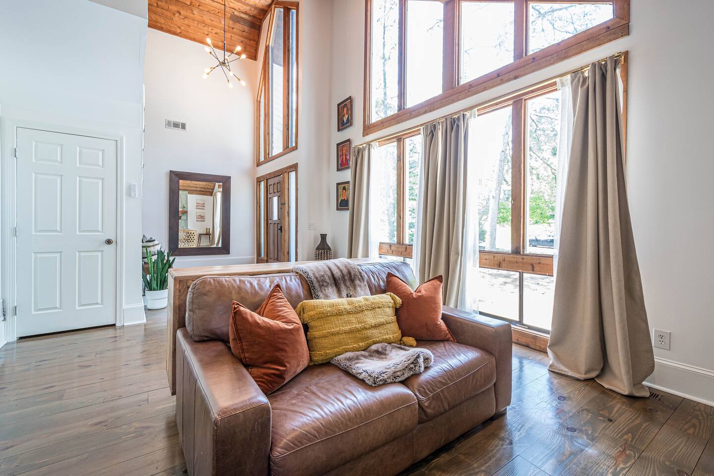 30 mins to FIFA World Cup 3 miles to East Cobb Baseball Complex 4.8 miles to Downtown Woodstock 4.2 miles to KSU Kennesaw State University 8.4 miles to Wellstar Kennestone Hospital 8.5 miles to Marietta Square 10 miles to Lake Alatoona 12 miles to Downtown Roswell 15 miles to the Atlanta Braves Stadium 15 miles to The Battery 18 miles to Northside Cherokee Hospital 23 miles to Northside Hospital 24 miles to Piedmont Hospital 25 miles to Midtown 25 miles to Piedmont park 25 miles to Botanical Gardens 26 miles to the Georgia Aquarium 29 miles to the Atlanta Zoo 32 miles to Emory University Hospital 37 miles to domestic terminal airport Renovated with love and attention to every detail, to ensure a relaxing and peaceful stay at our home. The Mid-Century Retreat conveniently combines two living rooms, fully stocked kitchen, dining area , 3 bedrooms with a private patio attached to primary bedroom, secluded loft, a beautiful backyard leading up to a creek to create a beautiful retreat ambience setting for your ideal stay. Large windows allow for plenty of natural light to illuminate the space, and along with bright wooden floors, tasteful finishes, and leafy plants, to create a pleasantly relaxing ambiance. ★ PARKING ★ ✔ MAX 2 cars spots available on the left side of the driveway. The remainder cars are subject to street parking. ★ MAIN LIVING ROOM ★ ✔ Large sectional couch to entertain entire family ✔ 85 in Sony TV ✔ Large windows overlooking the woods ✔ Comfy additional seating with Pillows and Blankets ✔ Fireplace ✔ Entrance to deck and backyard ★ FRONT LIVING ROOM ★ ✔ comfy couch with additional seating ✔ Large book section ✔ Large windows overlooking the forest ✔ Fireplace ★ KITCHEN & DINING ★ ✔ Kitchen Aid ✔ Refrigerator/Freezer ✔ Drip Coffee Maker ✔ Sink - Hot & Cold Water ✔ Trays ✔ Glasses ✔ Silverware ✔ Pots & Pans ✔ Disposables and essentials in the pantry A cozy dining table for 6 and a bar top that is suitable for 4. ★ PRIMARY BATHROOM ★ The inviting full bathroom is completely private and separated from the main space. ✔ Walk in-Shower DOUBLE shower head ✔ Bathtub ✔ Vanity for two ✔ Mirror ✔ Toilet ✔ Walk-in Closet ✔ Towels ★ BATHROOM ★ ✔ Shower ✔ Vanity ✔ Mirror ✔ Bidet ✔ Toilet ✔ Towels ★ OUTDOOR AREA ★ Step outside to the private patio from the primary bedroom sliding doors to enjoy some nature yoga. We also a deck with outdoor seating and a grill prepared for family fun. The deck leads to a staircase to the backyard which is full of trees and a nice play-set for children. If you continue to walk down the backyard you will find a beautiful creek that is great for picnics and stargazing. ✔ Seating Area with Table and Chairs ✔ Outdoor play set BBQ ✔ Picnic equipment ★ MASTER BEDROOM ★ ✔ Queen-Size Bed (Mattress type: Medium) with Pillows, Linens, and Sheets ✔ Night Stands with reading lamp ✔ Paloton Bike ✔ Private patio with zen station ✔ Zen station Yoga mats for Yoga in nature ✔ Private bathroom ★ BEDROOM 2★ ✔ Full-Size Bunk Beds (Mattress type: B soft and Top spring) with Pillows, Linens, and Sheets ✔ Closet for clothing storage ✔ Pack and play travel crib ★ BEDROOM 3★ ✔ twin-Size Bunk Beds(Mattress type: foam on bottom weight limit 200lbs medium on top weight limit 150lbs ) with Pillows, Linens, and Sheets ✔ Night Stands and children's desk ✔ Closet for clothing storage ★ BEDROOM 4 LOFT ★ ✔ King-Size Bed (Mattress type: Firm) with Pillows, Linens, and Sheets ✔ Fold-out futon (comfort type: firm gel) for additional sleeping area ✔ Ceiling fan ✔ Smart TV ✔ Night Stands ✔ Book Selection