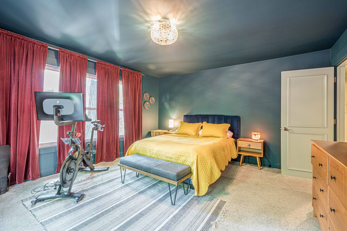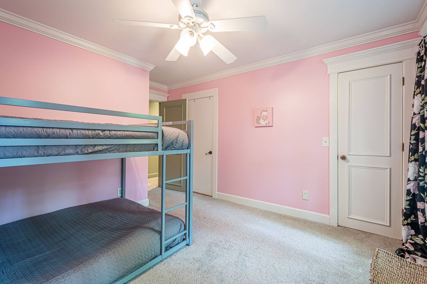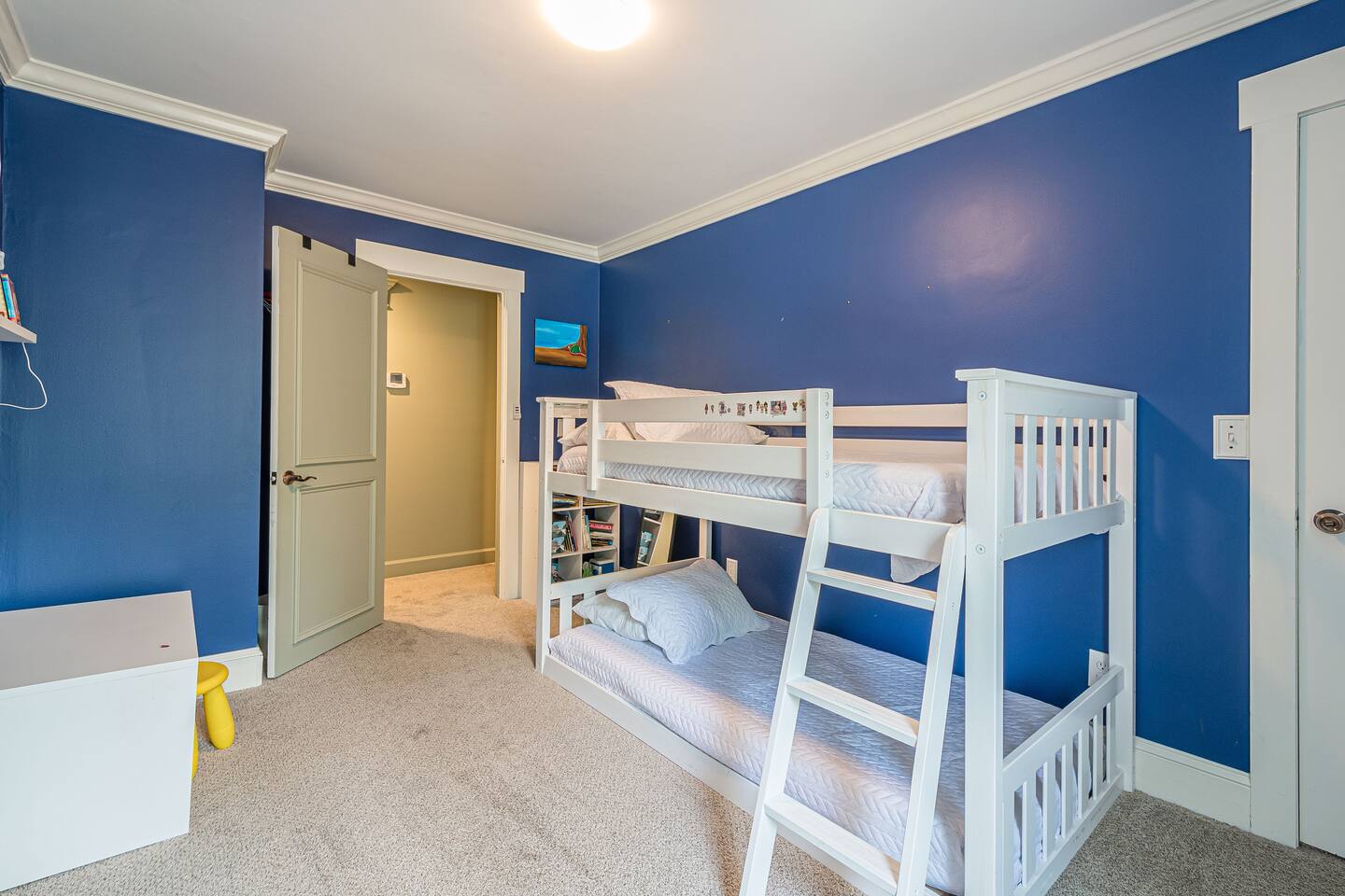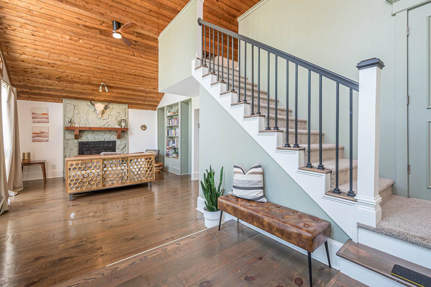 30 mins to FIFA World Cup 3 miles to East Cobb Baseball Complex 4.8 miles to Downtown Woodstock 4.2 miles to KSU Kennesaw State University 8.4 miles to Wellstar Kennestone Hospital 8.5 miles to Marietta Square 10 miles to Lake Alatoona 12 miles to Downtown Roswell 15 miles to the Atlanta Braves Stadium 15 miles to The Battery 18 miles to Northside Cherokee Hospital 23 miles to Northside Hospital 24 miles to Piedmont Hospital 25 miles to Midtown 25 miles to Piedmont park 25 miles to Botanical Gardens 26 miles to the Georgia Aquarium 29 miles to the Atlanta Zoo 32 miles to Emory University Hospital 37 miles to domestic terminal airport Renovated with love and attention to every detail, to ensure a relaxing and peaceful stay at our home. The Mid-Century Retreat conveniently combines two living rooms, fully stocked kitchen, dining area , 3 bedrooms with a private patio attached to primary bedroom, secluded loft, a beautiful backyard leading up to a creek to create a beautiful retreat ambience setting for your ideal stay. Large windows allow for plenty of natural light to illuminate the space, and along with bright wooden floors, tasteful finishes, and leafy plants, to create a pleasantly relaxing ambiance. ★ PARKING ★ ✔ MAX 2 cars spots available on the left side of the driveway. The remainder cars are subject to street parking. ★ MAIN LIVING ROOM ★ ✔ Large sectional couch to entertain entire family ✔ 85 in Sony TV ✔ Large windows overlooking the woods ✔ Comfy additional seating with Pillows and Blankets ✔ Fireplace ✔ Entrance to deck and backyard ★ FRONT LIVING ROOM ★ ✔ comfy couch with additional seating ✔ Large book section ✔ Large windows overlooking the forest ✔ Fireplace ★ KITCHEN & DINING ★ ✔ Kitchen Aid ✔ Refrigerator/Freezer ✔ Drip Coffee Maker ✔ Sink - Hot & Cold Water ✔ Trays ✔ Glasses ✔ Silverware ✔ Pots & Pans ✔ Disposables and essentials in the pantry A cozy dining table for 6 and a bar top that is suitable for 4. ★ PRIMARY BATHROOM ★ The inviting full bathroom is completely private and separated from the main space. ✔ Walk in-Shower DOUBLE shower head ✔ Bathtub ✔ Vanity for two ✔ Mirror ✔ Toilet ✔ Walk-in Closet ✔ Towels ★ BATHROOM ★ ✔ Shower ✔ Vanity ✔ Mirror ✔ Bidet ✔ Toilet ✔ Towels ★ OUTDOOR AREA ★ Step outside to the private patio from the primary bedroom sliding doors to enjoy some nature yoga. We also a deck with outdoor seating and a grill prepared for family fun. The deck leads to a staircase to the backyard which is full of trees and a nice play-set for children. If you continue to walk down the backyard you will find a beautiful creek that is great for picnics and stargazing. ✔ Seating Area with Table and Chairs ✔ Outdoor play set BBQ ✔ Picnic equipment ★ MASTER BEDROOM ★ ✔ Queen-Size Bed (Mattress type: Medium) with Pillows, Linens, and Sheets ✔ Night Stands with reading lamp ✔ Paloton Bike ✔ Private patio with zen station ✔ Zen station Yoga mats for Yoga in nature ✔ Private bathroom ★ BEDROOM 2★ ✔ Full-Size Bunk Beds (Mattress type: B soft and Top spring) with Pillows, Linens, and Sheets ✔ Closet for clothing storage ✔ Pack and play travel crib ★ BEDROOM 3★ ✔ twin-Size Bunk Beds(Mattress type: foam on bottom weight limit 200lbs medium on top weight limit 150lbs ) with Pillows, Linens, and Sheets ✔ Night Stands and children's desk ✔ Closet for clothing storage ★ BEDROOM 4 LOFT ★ ✔ King-Size Bed (Mattress type: Firm) with Pillows, Linens, and Sheets ✔ Fold-out futon (comfort type: firm gel) for additional sleeping area ✔ Ceiling fan ✔ Smart TV ✔ Night Stands ✔ Book Selection
