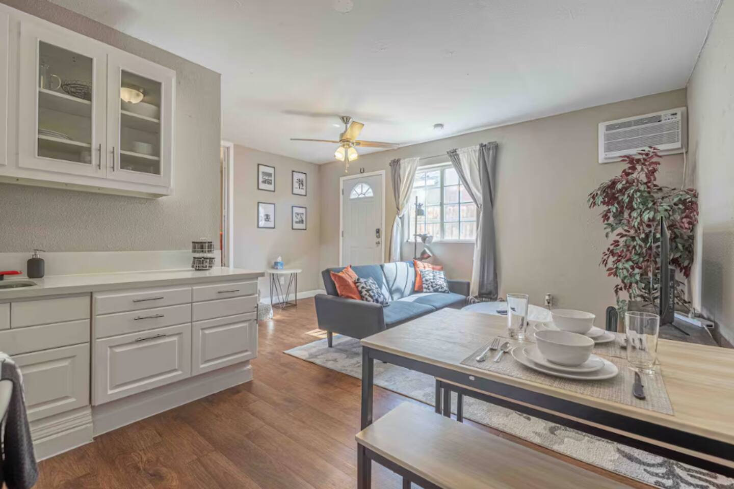 The home is all yours during your stay, so you can fully relax, unwind, and feel right at home. While it is part of a duplex, your private unit is located on the right side of the property and is accessed through the black gate. The main house is a separate rental that may be occupied by other guests. Please note that the front and backyard are shared common spaces, available for both you and the main house guests to enjoy. **Please note there is no driveway parking with this unit. Parking is street parking. Other than the already mentioned amenities, our home is also equipped with: ✔ High-Speed Wi-Fi ✔ Air Conditioning ✔ Heating ✔ Iron + Board ✔ Hair Dryer ✔ Free Parking